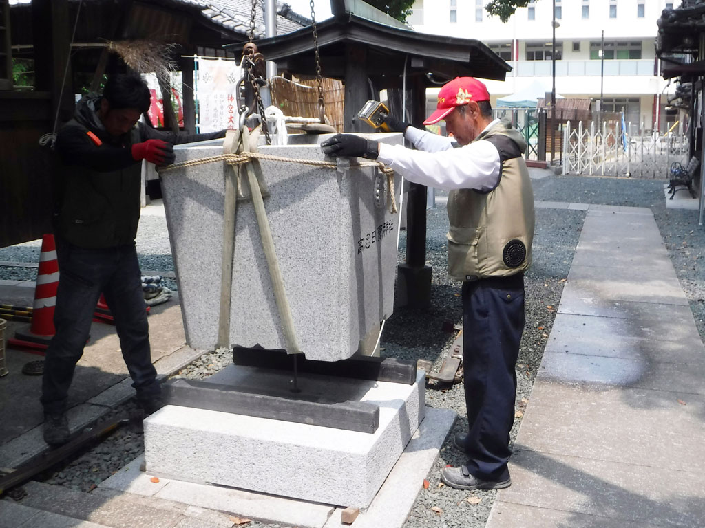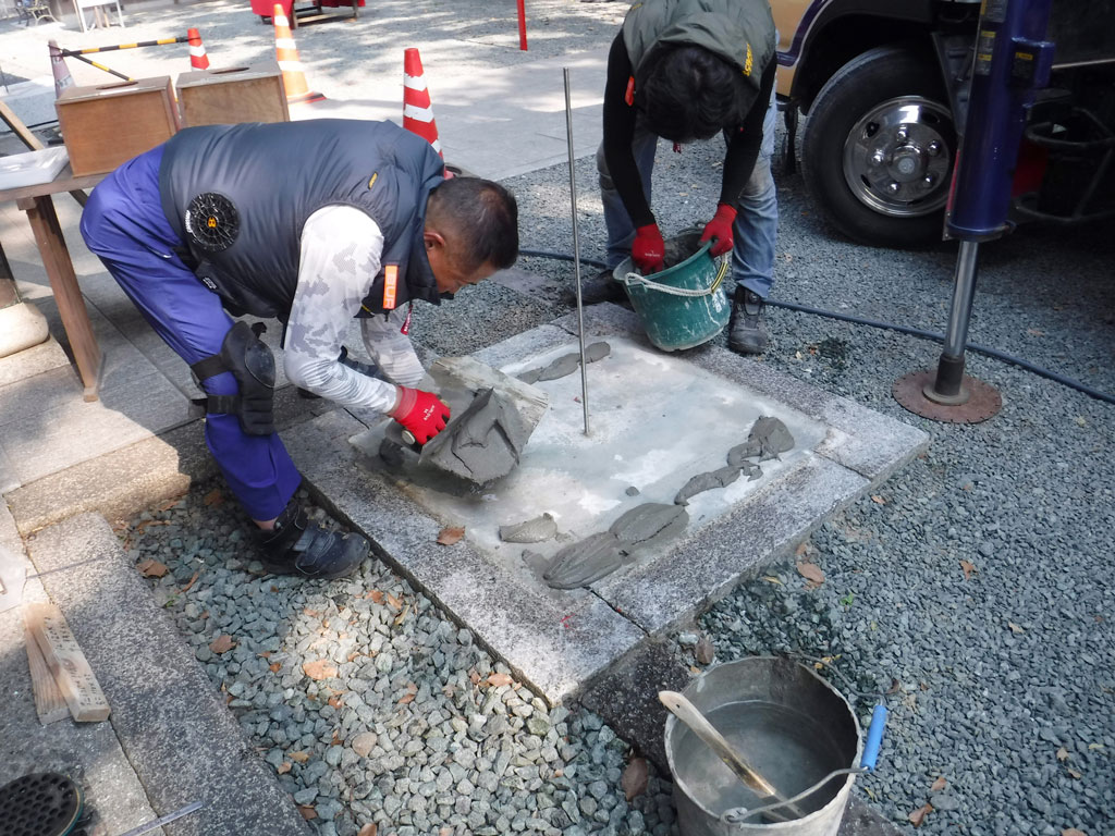 お墓のリフォームのみならず、神社の石塀や鳥居の修繕も行っています。